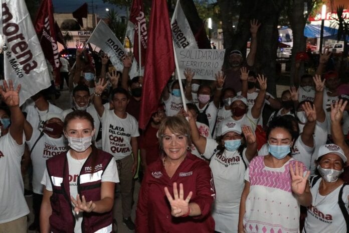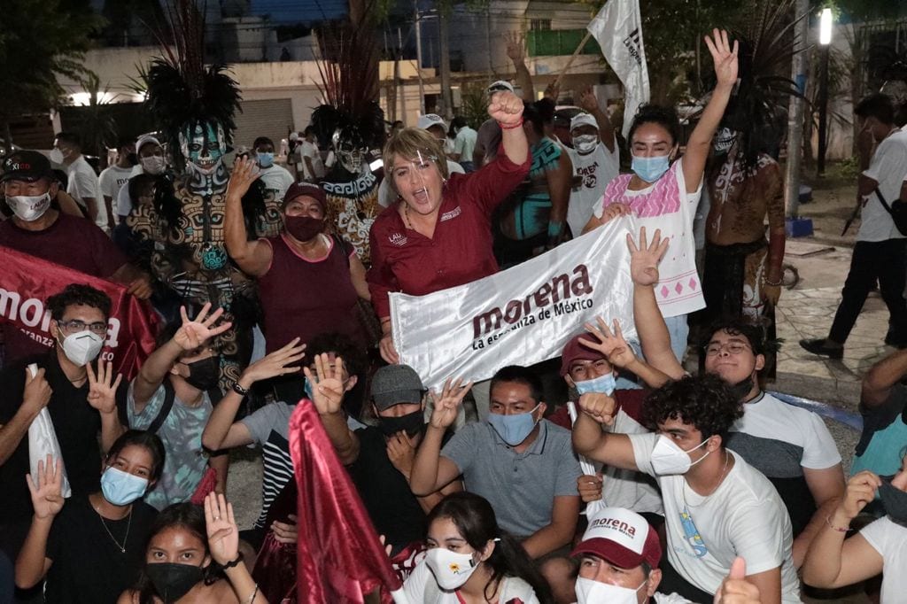 Finalmente la candidata de Morena, Partido Verde, PT y MAS, a presidenta municipal de Solidaridad, Laura Beristain convocó a los vecinos de la Colosio a salir a votar desde temprano, en familia, todos juntos, unidos como muéganos y con cubrebocas.