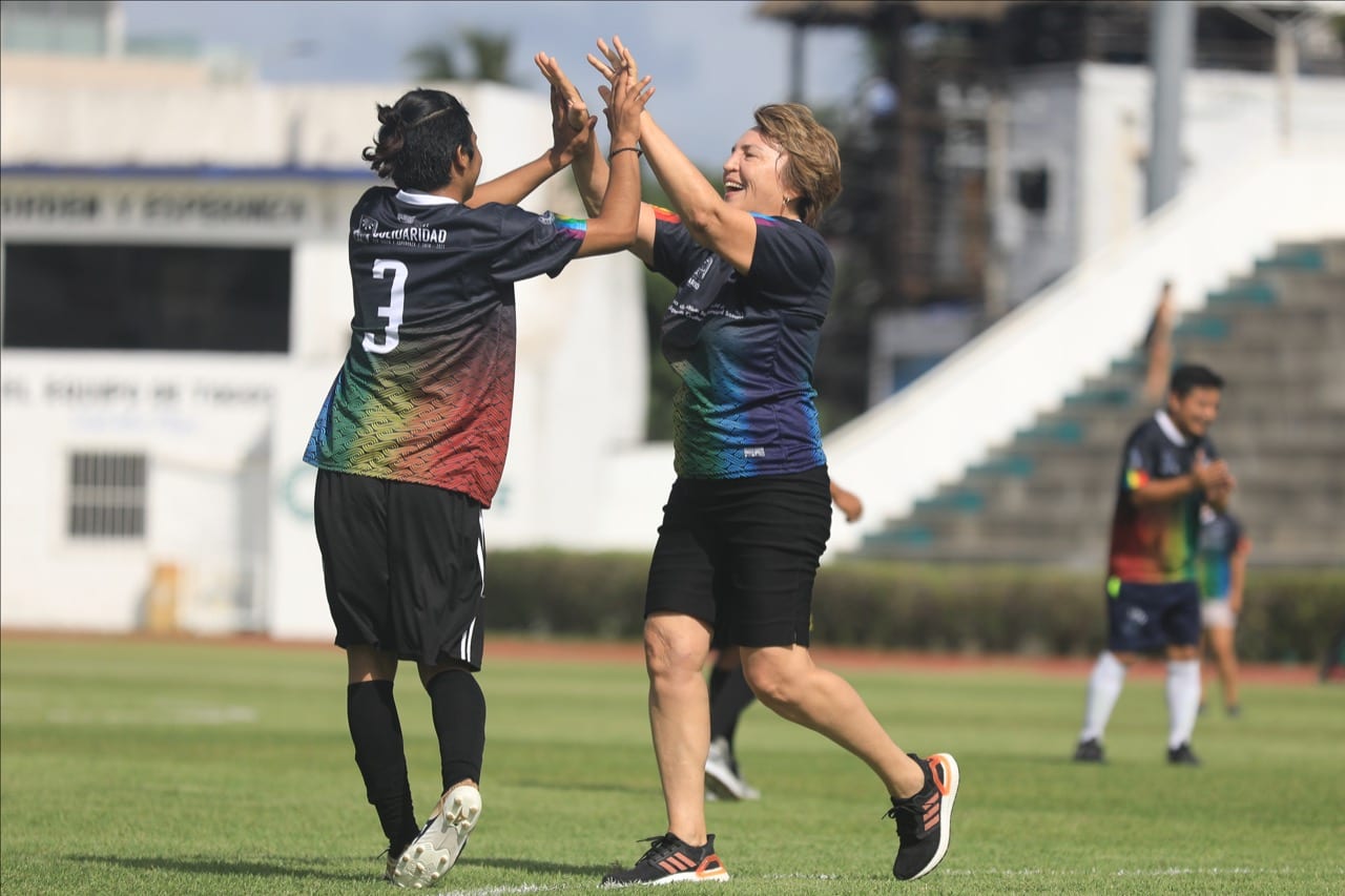 Laura Beristain, acompañada del director técnico de la Segunda División del Interplaya Carlos Bracamonte Cenizo; el titular del Instituto Municipal del Deporte, Nelson Ceballos Castilla y el coordinador de la Unidad de Diversidad Sexual, Omar Hipólito Ortiz, señaló que la práctica del deporte enaltece a las personas, enseña valores como el compañerismo, solidaridad y trabajo en equipo, moldea el carácter y hace mejor a las personas, por lo que en su práctica cotidiana no debe haber cabida a expresiones de odio.