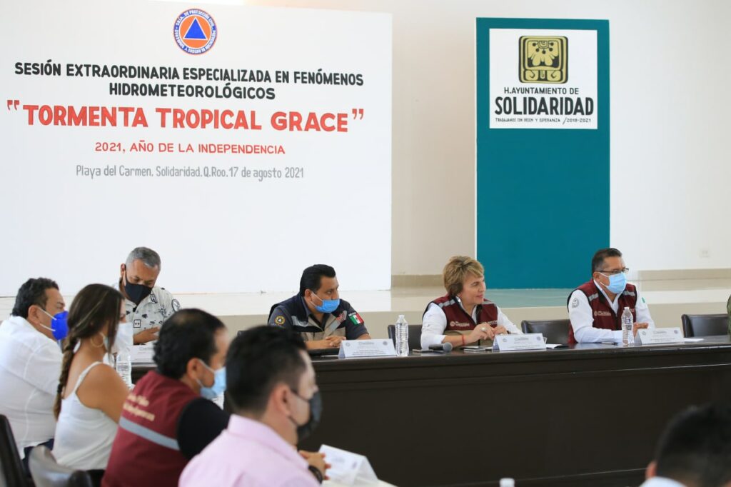 Playa del Carmen.- La presidenta municipal Laura Beristain Navarrete informó que el municipio se encuentra preparado ante la presente temporada de ciclones tropicales dando puntual seguimiento a la trayectoria y evolución de la tormenta tropical “Grace”, por lo que este martes se realizó la Sesión Extraordinaria del Comité Especializado en Fenómenos Hidrometeorológicos en la que participan coordinadamente autoridades de los tres niveles de gobierno.