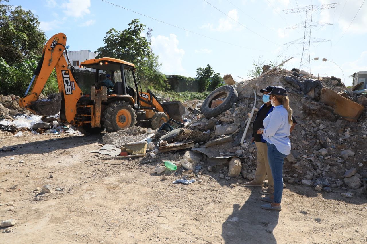 Playa del Carmen, Quintana Roo.- El gobierno de Solidaridad, que encabeza la presidenta Lili Campos Miranda, a través de la Secretaría de Servicios Públicos, lleva a cabo acciones de limpieza y recoja de escombros y cacharros de un macro tiradero que se encuentra en la colonia Fundador, como parte de la campaña “Manos a la obra”, gracias al cual se ha avanzado hasta la fecha con la eliminación de un 30% de los 500 micro tiraderos detectados en el municipio.