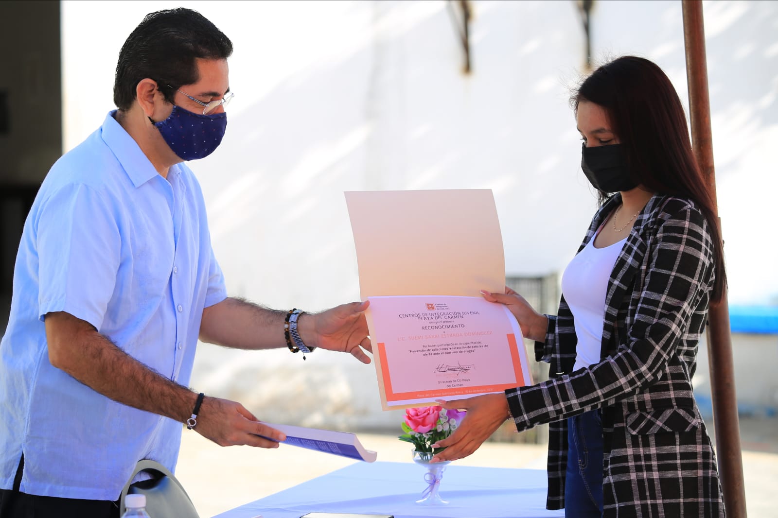 Playa del Carmen, Solidaridad, a 12 de diciembre del 2021.- Como parte de las acciones que el gobierno de Solidaridad impulsa para fomentar una favorable reinserción en la sociedad de las personas privadas de la libertad, se llevó a cabo la entrega de reconocimientos a 9 personas del personal administrativo del Centro de Retención Municipal que participaron en el curso “Prevención de adicciones y detección de señales de alerta ante el consumo de drogas”, que fue impartido por el Centro de Integración Juvenil.