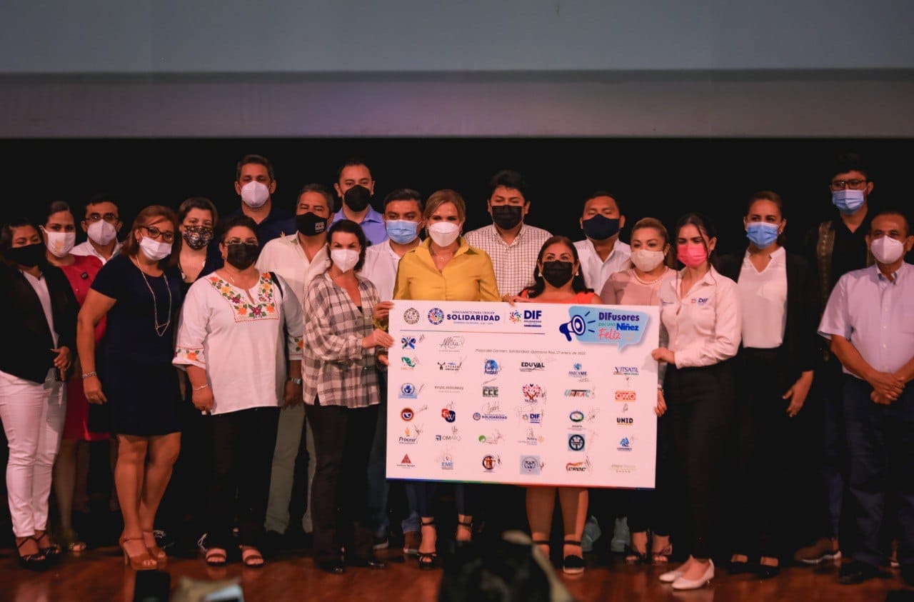 Playa del Carmen, solidaridad. 27 de enero del 2022.- La presidenta Lili Campos Miranda en conjunto con la presidenta honoraria del DIF Solidaridad, Rosita Escobedo Campos, cámaras empresariales, universidades, líderes sociales y sociedad organizada puso en marcha el programa “DIFusores por una niñez feliz”, para la prevención del abuso sexual infantil en el municipio.