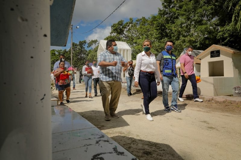 Playa del Carmen, Quintana Roo, a 1 de noviembre de 2021.- La presidenta municipal Lili Campos Miranda, realizó este día un recorrido por el panteón municipal de Playa del Carmen, para constatar que el camposanto se encuentre limpio y acondicionado para recibir a las familias que visitan a sus fieles difuntos del 31 de octubre al 2 de noviembre.