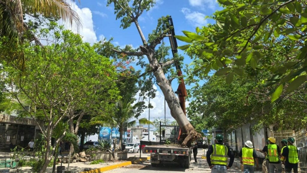 La ceiba fue reubicada a ese lugar en el 2016 y permanecía sana, sin embargo, al parecer por las pasadas lluvias y vientos se fue inclinando, corriendo el riesgo de caer completamente, interviniendo en el cuidado y restauración Riviera Maya Sostenible A.C., Donante Anónimo y Coral Diamante.