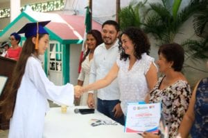 Solidaridad.- La presidenta honoraria del Sistema para el Desarrollo Integral de la Familia (DIF) Solidaridad, Karla Robles Miranda, entregó 22 certificados de estudio, al mismo número de alumnos que el día de hoy concluyeron su primaria y secundaria, como parte del programa 10-17 que busca impulsar la educación y erradicar la deserción escolar en niños y jóvenes del municipio.