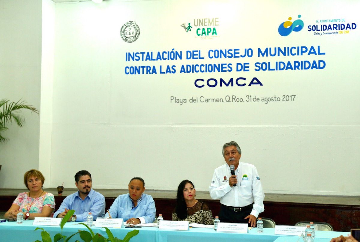 Lo anterior, al encabezar la instalación del Consejo Municipal contra las Adicciones (COMCA) del municipio de Solidaridad.