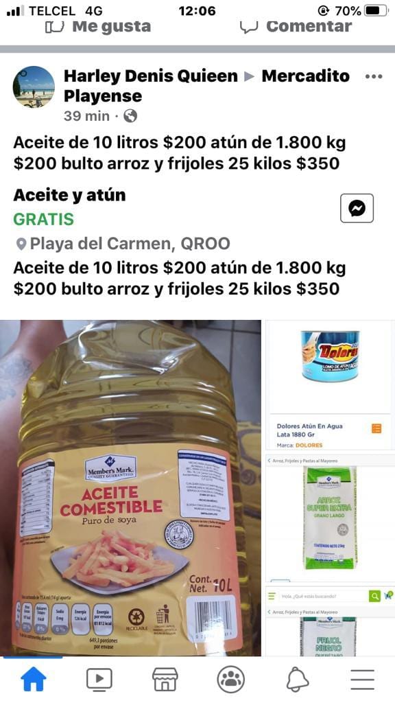 “La gente le daba productos como leche Nido, atún, aceite,arroz, frijoles, etc. Pero nos dimos cuenta que ahora está vendiendo las cosas que se le han donado. Está lucrando con las donaciones lo cual constituye un delito y pudiera hasta ser fraude”, denunció el ciudadano de Playa del Carmen.