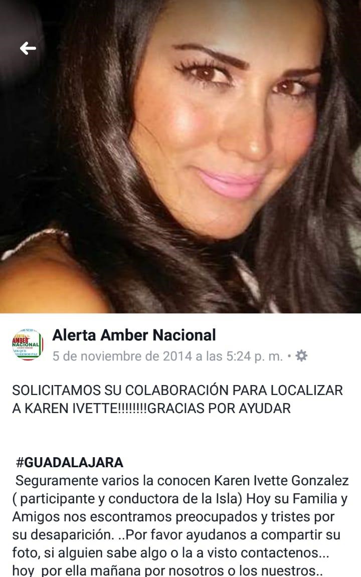 Se trata de Karen Ivette González, quien fuera competidora de La Isla en 2013, que ya en 2014 desapareciera, lo que en su momento generó una alerta Amber, aunque fue hallada a los pocos días.
