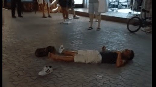 A través de las redes sociales circuló un vídeo en el que se aprecia a las dos personas tiradas y entre la multitud que pasa alrededor se escucha que tienen heridas de arma punzocortante.