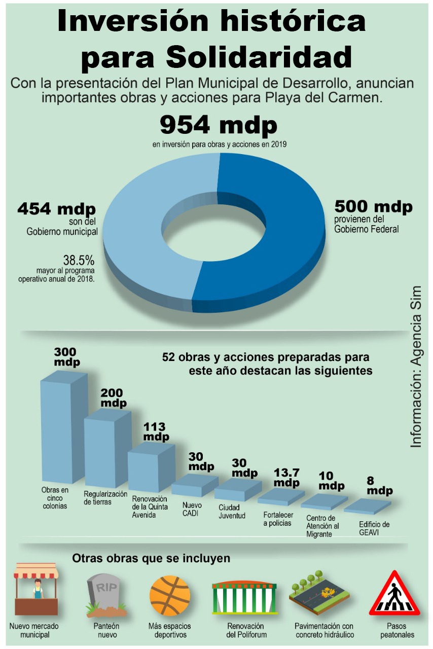 Playa del Carmen.- Este año, Solidaridad realizará obras y acciones como nunca antes se ha visto, al contar con una bolsa histórica de 954 millones de pesos, propios y federales, fue anunciado hoy durante la presentación del Plan de Desarrollo Municipal 2018-2021.
