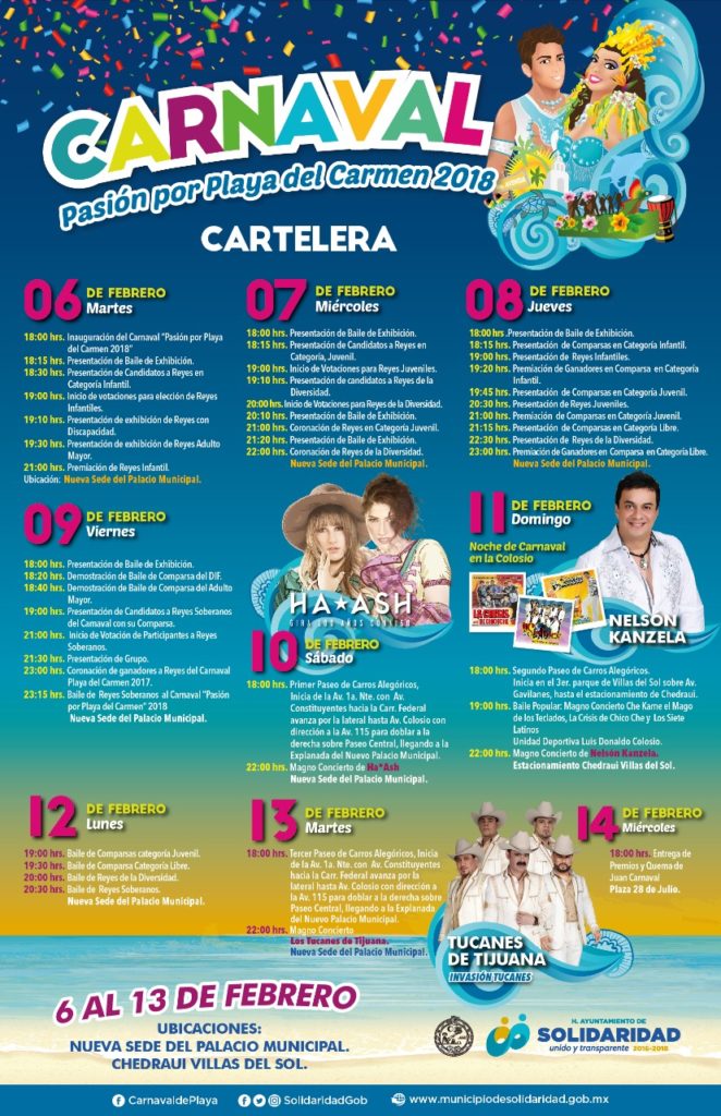 Para mayor información sobre las actividades del Carnaval “Pasión por Playa del Carmen” 2018, da click aquí.