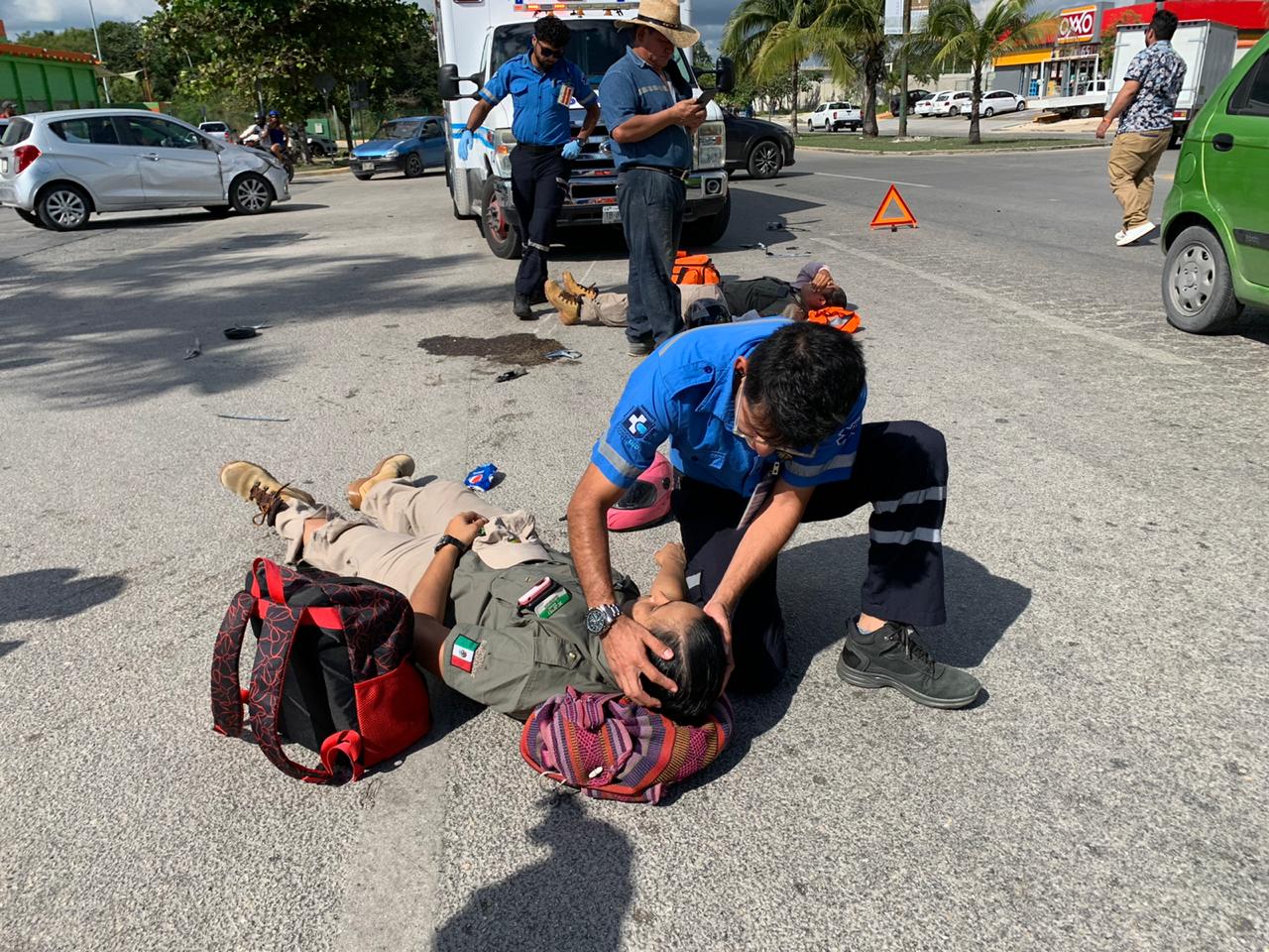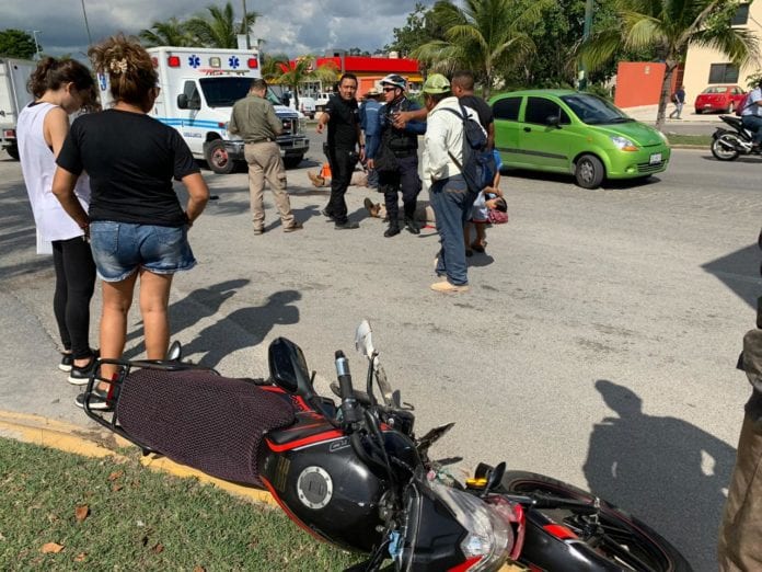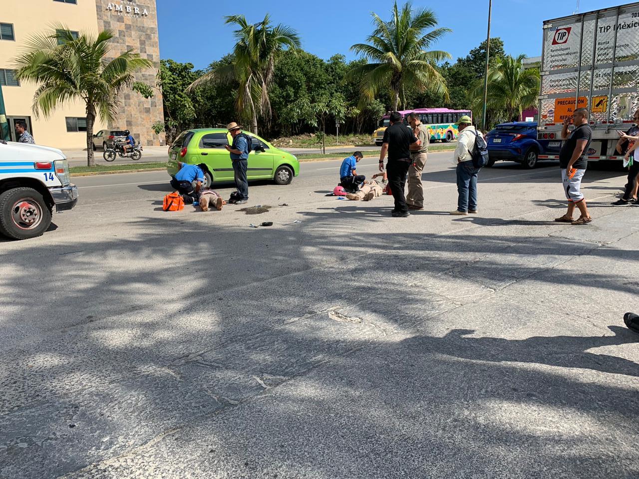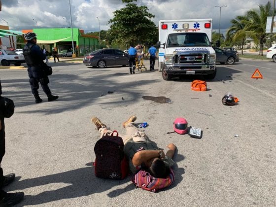 Los hechos ocurrieron la tarde de hoy sobre el Arco Vial lado norte, con bulevar Playa del Carmen frente a la plaza comercial “Centro Maya”, cuando la mujer cambió de dirección y no respetó el alto preventivo; colisionó a dos jóvenes mujeres que circulaban en una motocicleta y son empleadas del parque Xcaret.