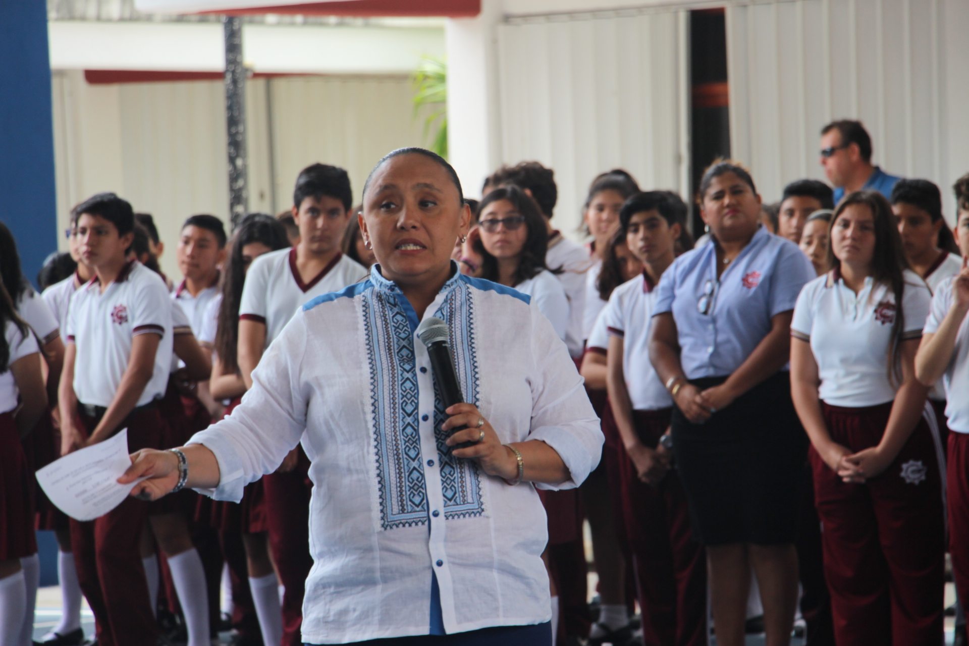 La alumna, Ximena Donají Dzit de Jesús, Representante de la sociedad de alumnos, destacó que en una visita anterior “la alcaldesa empeñó su palabra al prometernos la construcción de este domo y a diferencia de otros gobernadores, sí cumplió“.