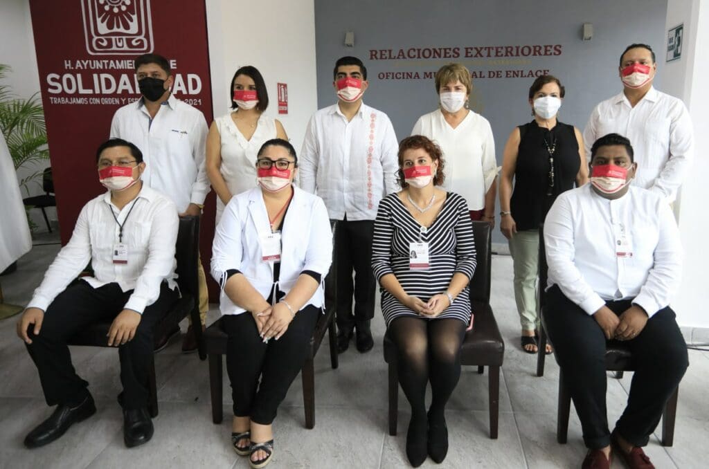 Acompañando a la alcaldesa en este evento, estuvieron la titular de la Oficina Pasaporte de Cancún, Delia Lorena Caraveo Acosta; la Oficial Mayor del Ayuntamiento, Yazmín Janette Díaz Ojeda; el secretario general, Alfredo Paz Cetina; y Ana Bernal, responsable de esta oficina enlace en Solidaridad.