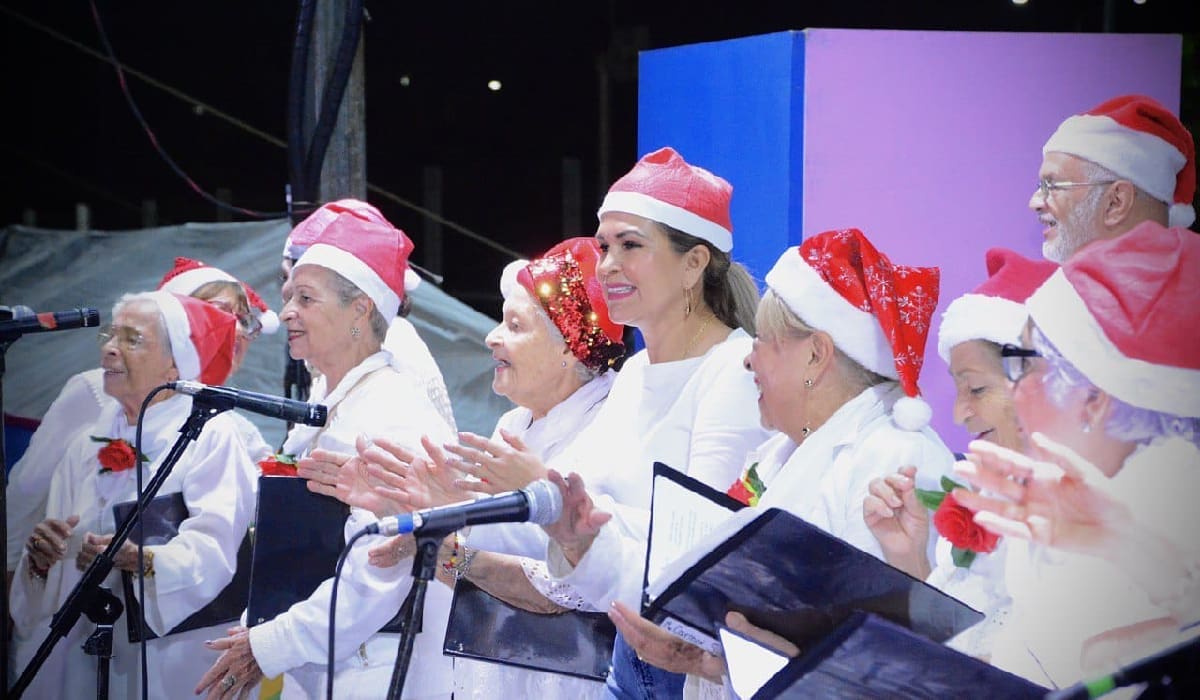 Playa del Carmen. – Con el canto de la letanía de la posada y acompañada del coro de adultos mayores, la presidenta municipal Lili Campos cortó el listón inaugural de la villa navideña ubicada en el recinto ferial de la avenida CTM.