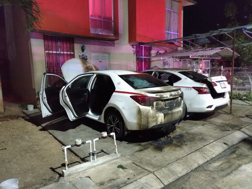 Según testigo, los hechos ocurrieron de manera simultánea y sorpresiva en cuatro distintos puntos del Fraccionamiento “Puerto Maya”, pues según vecinos del lugar solo observaron que salían llamas de los vehículos.