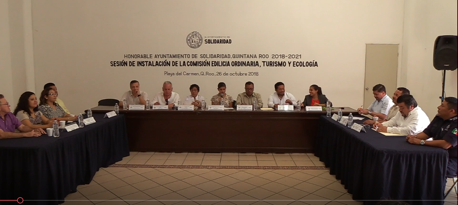 En presencia de autoridades como el síndico municipal, Omar Sánchez Cutis, el Diputado Federal Luis Alegre, regidores y público en general, se instaló la Sesión de Instalación de la Comisión Edilicia Ordinaria, Turismo y Ecología 2018 -2021, de conformidad con los artículos 1, 4, 5,16 y 17 del Reglamento Interior del H. Ayuntamiento de Solidaridad.