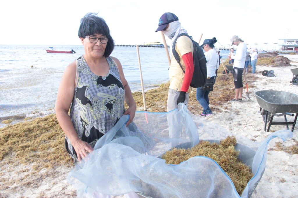 Por su parte, integrantes del colectivo El Jardín de Todas, quienes se sumaron como otras organizaciones a esta limpieza, estuvieron presentes retirando sargazo con una red.