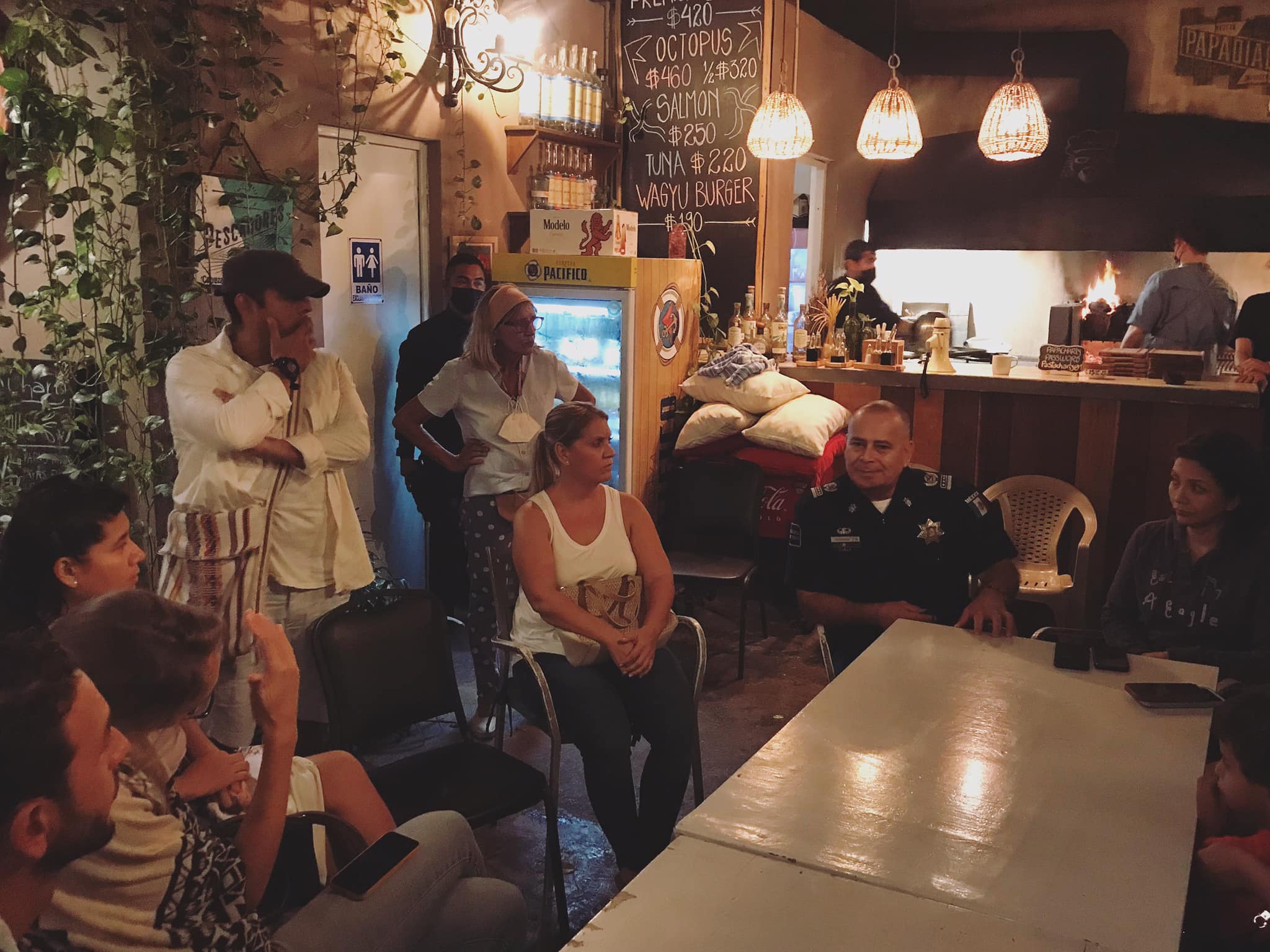 Se encontraban el secretario de Seguridad Pública y Tránsito Municipal de Solidaridad, Raúl Tassinari, el director de la policia preventiva, el Comandante Gabriel Ornelas, y la encargada de comunicacion de seguridad publica, Rosana Diaz.