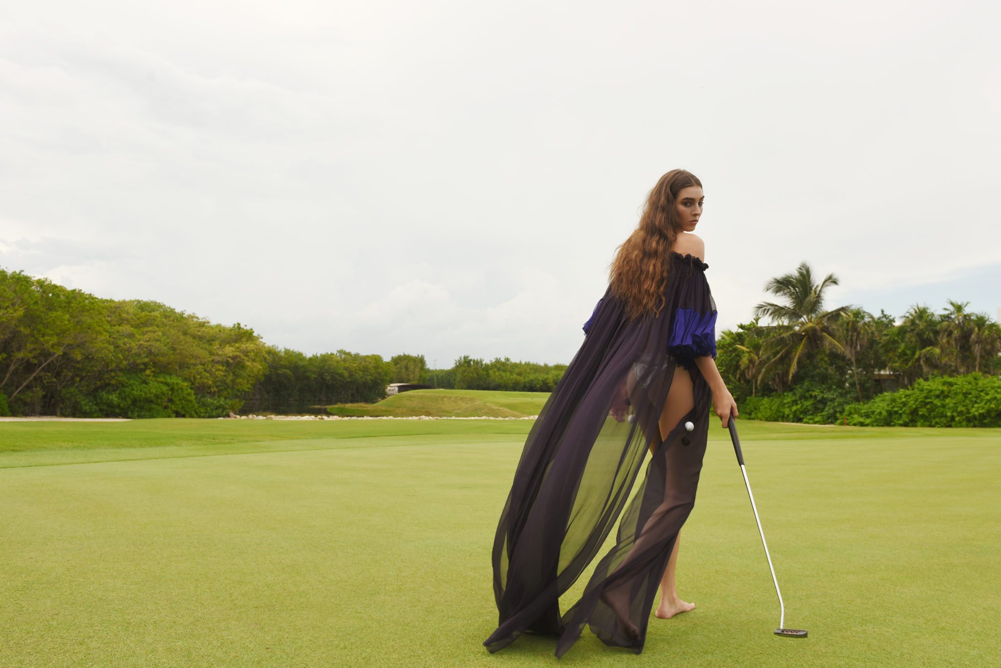 La “Capsule Collection” también está inspirada en la reserva natural, en sus aves místicas y en la idea de imaginar a una mujer que renace en el paraíso. Mayakoba Resort sirvió para Kris Goyri como un santuario de creación, un espacio de silencio donde conectó con la naturaleza, con la arquitectura limpia del resort para posteriormente empezar con el proceso creativo.