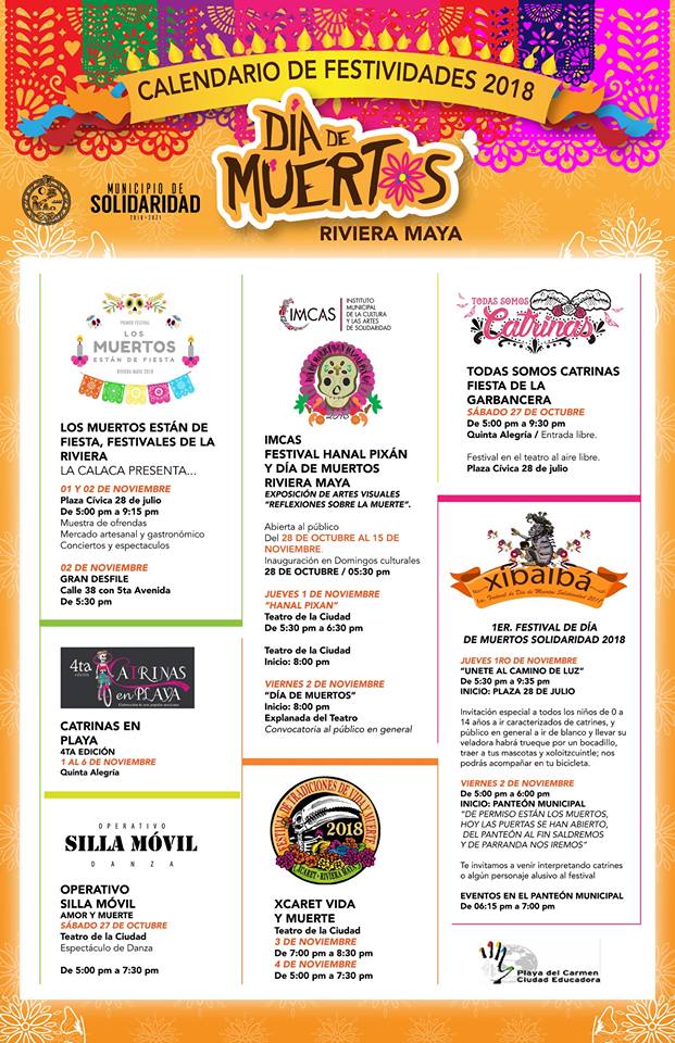 Playa del Carmen, Quintana Roo.-El Día de Muertos se vivirá al máximo en Playa del Carmen, con una nutrida agenda dada a conocer por el Instituto Municipal de la Cultura y las Artes en Solidaridad (IMCAS) y artistas independientes que harán de estas fechas toda una fiesta centrada en las tradiciones de México y de la Península de Yucatán, la cual podrá ser disfrutada por turistas y ciudadanos.