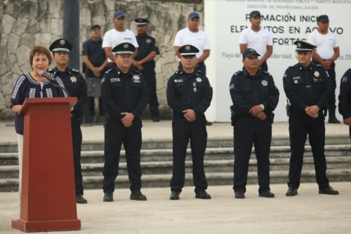 Playa del Carmen.- Durante el pase de lista de la Policía Municipal, la presidenta Laura Beristain Navarrete, reconoció la labor de los miembros de la corporación y de sus mandos, al tiempo que los invitó a cerrar filas contra la delincuencia.