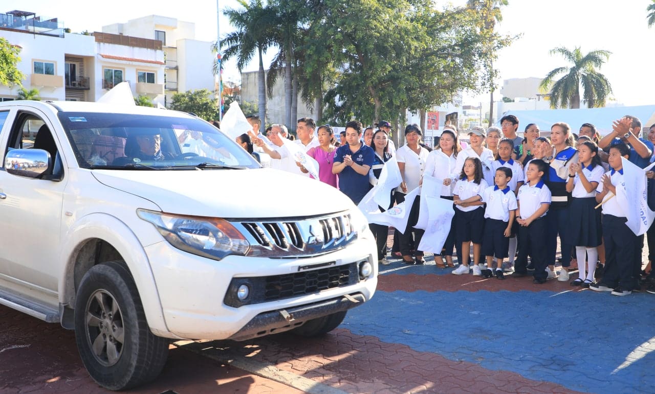 Playa del Carmen.- La presidenta Lili Campos dio el banderazo para entregar 33 mil kits de uniformes escolares gratuitos a niñas y niños de 89 planteles de nivel primaria de todo el municipio, en los que se invirtieron 22 millones de pesos.