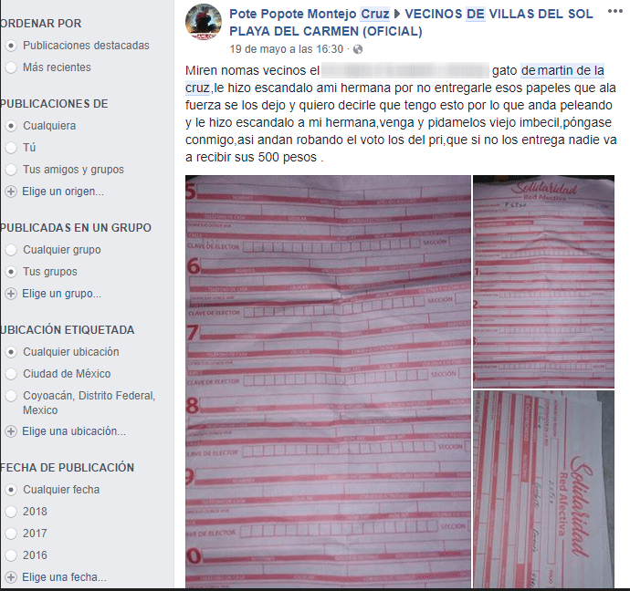Playa del Carmen,Quintana Roo.-Luego de las denuncias en redes sociales sobre la compra de datos personales que se hace a presuntos integrantes de la CROC, sindicato cuyo líder es Martín de la Cruz, candidato a la presidencia Municipal de Solidaridad por el PRI-PVEM-Panal, Leonel Alfonso Ojeda, pidió a los ciudadanos denunciar estas conductas anti democráticas.