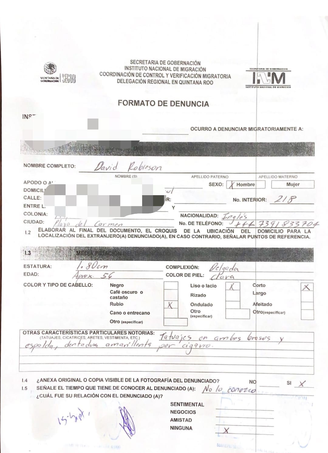 Ahora los agraviados interpusieron una denuncia ante el Instituto Nacional de Migración, que debido al presunto actuar criminal de David “N”, podría expulsarlo del país.