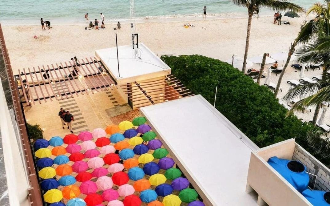 No solo cubre a locales y turistas del sol, sino que además se aprecian todos los colores de estas sombrillas. Amarillo, azul, rojo, morado, rosa, verde, naranja, engalanan este arenal de Playa del Carmen.