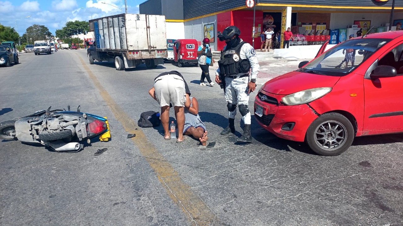 Playa del Carmen.- Una mujer embarazada acabó en un hospital luego de haber sido impactada por el conductor de un auto sobre la calzada Puerto Maya.
