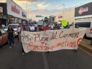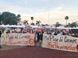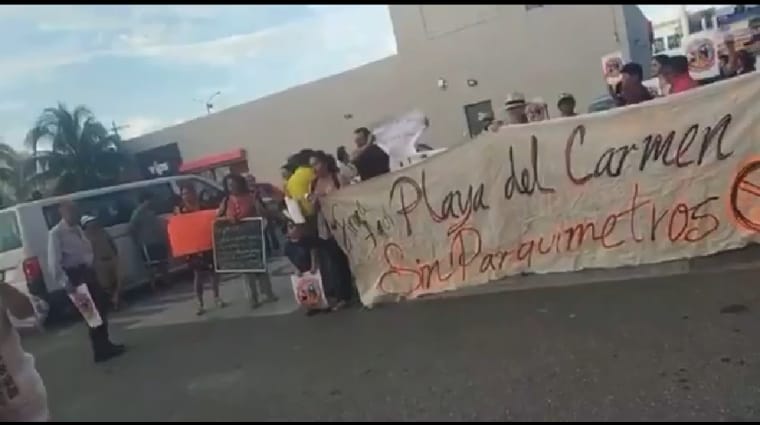 Playa del Carmen.- Un grupo de cerca de 40 ciudadanos se congregaron en el primer cuadro de la ciudad para expresar su rechazo hacia el sistema de parquímetros que comenzó a funcionar este mes.