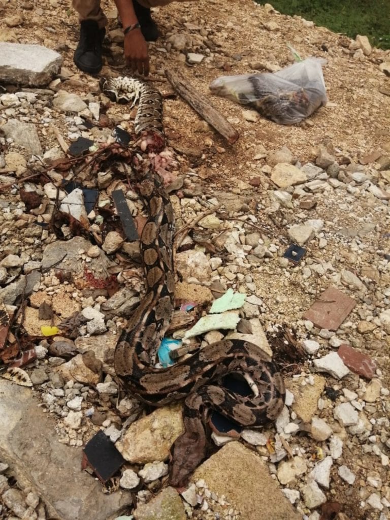 De acuerdo con los vecinos varias culebras han asustado a quienes habitan a un costado de la Glorieta Segunda Etapa Puerto Maya en Puerto Aventuras y las están matando.