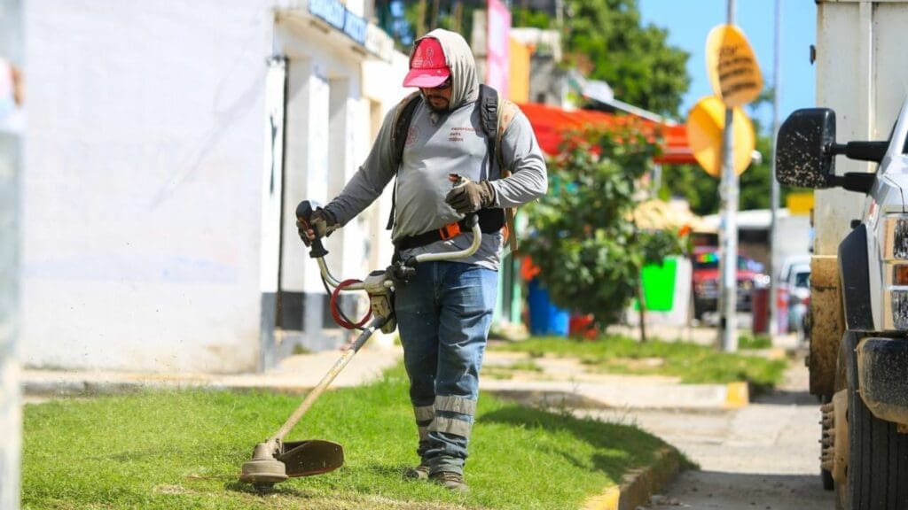 Puerto Aventuras, Quintana Roo, 12 de noviembre de 2024.— Más de 200 trabajadores de la Secretaría de Servicios Públicos Municipales acudieron hoy, por instrucciones de la presidenta municipal Estefanía Mercado, para llevar a cabo una mega jornada de limpieza, bacheo, desazolve de pozos, poda, recoja de basura, descacharrización y alumbrado público, a fin de darle vitalidad y mejorar la imagen urbana de esta alcaldía.