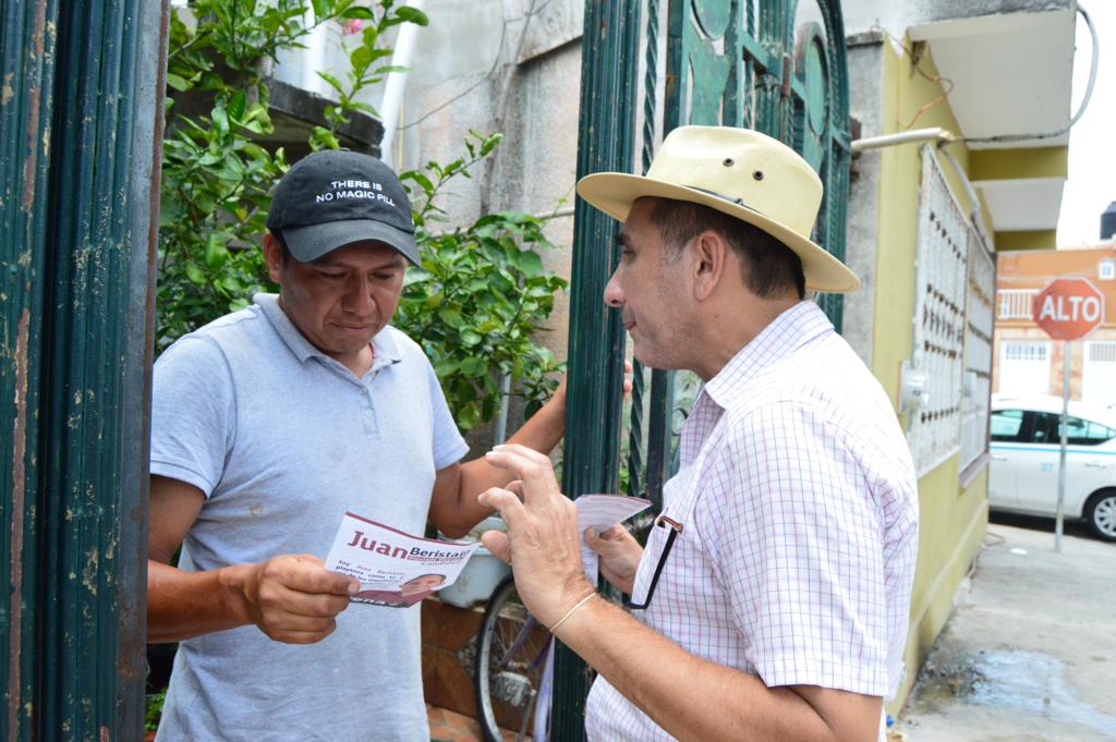 Una campaña de propuestas que responde a la necesidad de los ciudadanos es la que ha realizado el abanderado de MORENA en el Distrito 10, Juan Carlos Beristain Navarrete, quien en esta primera recta rumbo al Congreso del Estado, ha recorrido ya gran parte de las calles de Solidaridad, llevando el mensaje de la Cuarta Transformación.