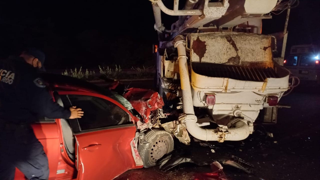 Al parecer, el vehículo venía a exceso de velocidad y el conductor no se percató de esta grúa que estaba prácticamente detenida, en el kilómetro 240 de esta vialidad, cerca de Casa Tortuga, por lo que se estrelló de frente.