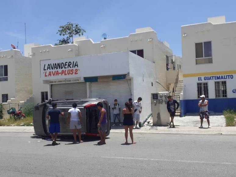Playa del Carmen.- Una mujer venía presuntamente a alta velocidad y perdió el control de su vehículo, que sufrió una volcadura sobre su lado izquierdo.