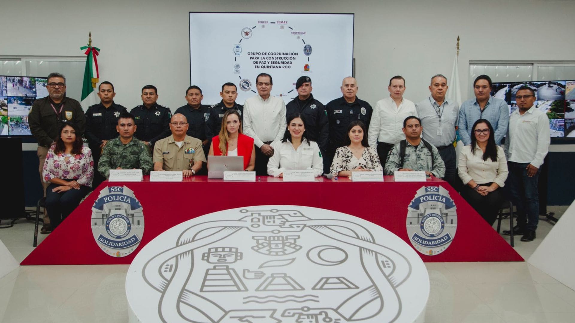 A la reunión también asistieron Estefanía Caro Farah, secretaria Técnica estatal en Quintana Roo; Karen Alejandra Román Flores, secretaria técnica de la Coordinación Regional para la Construcción de Paz y Seguridad de Solidaridad; el vicealmirante C. G D. E. M. Jesús Pineda Flores, comandante de la Décimo Quinta Zona Naval; el teniente de Infantería Francisco Ramírez Pascual, en representación del 64 Batallón de Infantería, y el segundo subinspector Carlos Arturo Jesús Jiménez, comandante de la 375/a compañía de la Guardia Nacional, así como representantes de instituciones de seguridad de los tres órdenes de gobierno.