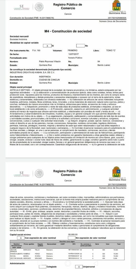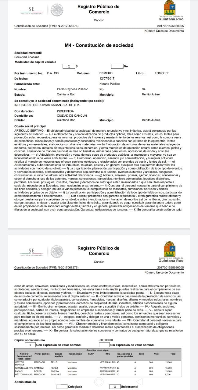 Chilly Willy’s y Ramo Operadora SA de CV no son los únicos negocios de la familia Mercado. En el 2017 se constituyó Industrias Creativas Kaban SA de CV. Su objetivo es la elaboración y comercialización de productos ópticos, tales como cristales, lentes, lentes para protección solar, repuestos para los mismos, productos de limpieza y mantenimiento de los mismos, así como compra venta de cosméticos, productos y accesorios relacionados con optometría, lentes estéticos y ornamentales.