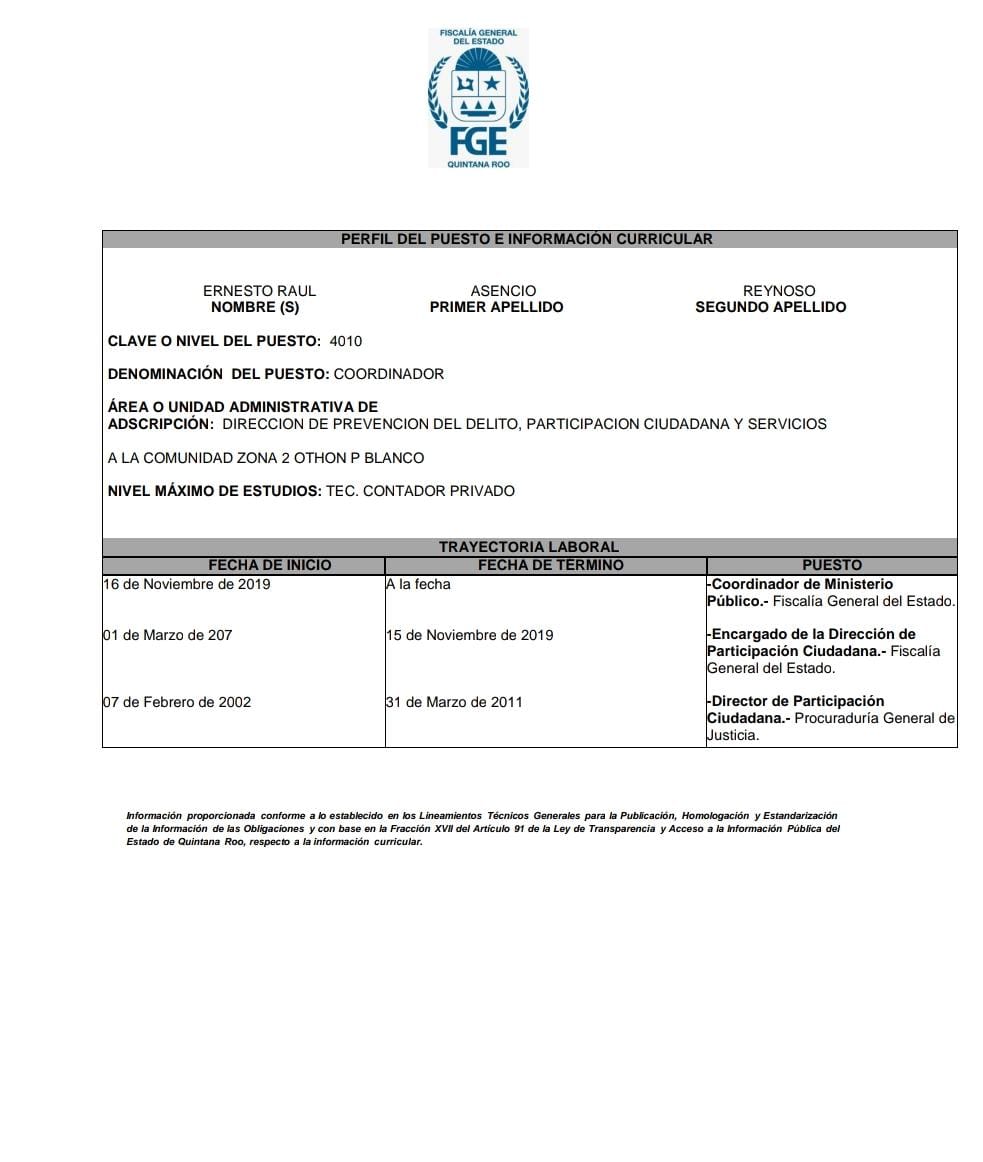 De febrero de 2002 a marzo de 2011 fue director de Participación Ciudadana de la Procuraduría. Posteriormente de 2017 a 2019 fue encargado de despacho de la misma Dirección de Participación Ciudadana de la Fiscalía de Quintana Roo. Y de 2019 a la fecha labora como coordinador de Ministerio Público de la Fiscalía General del Estado.