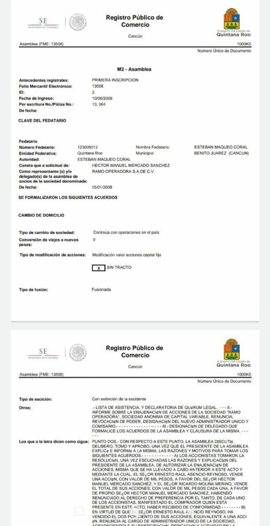 Para el 2008, por parte de Ramo Operadora SA de CV se ingresaron ante el Registro Público de Comercio solicitudes para la enajenación y posterior fusión de acciones.