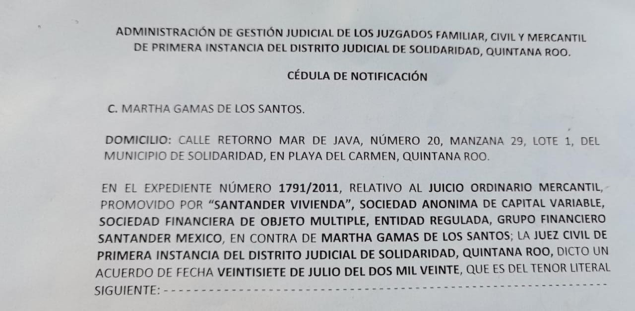 Y es que, el pasado 10 de agosto a la señora Marta Gamas De los Santos le llegó la orden del juez dándole 3 días para desocupar.