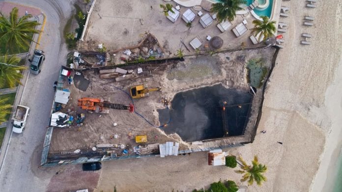 Playa del Carmen.- Ninguna autoridad de Playa del Carmen ha detenido la construcción del hotel “It Beach” a la altura de avenida CTM con Zona Federal Marítimo Terrestre, pese a que el daño ambiental es muy claro.