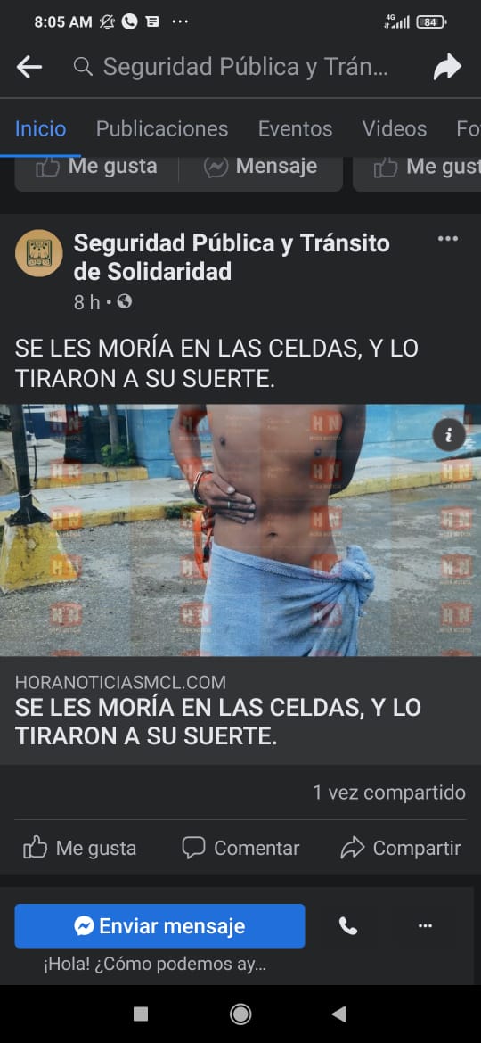 Llama la atención que en la cuenta oficial de Facebook de la Seguridad Pública y Tránsito de Solidaridad colocó una publicación relacionada con este hecho, aunque luego la borró, quedó una captura.