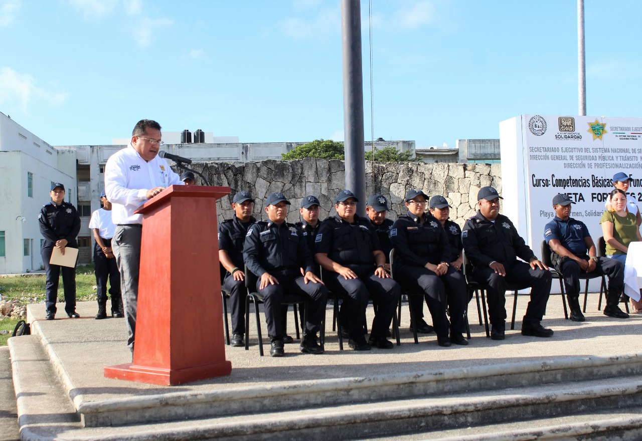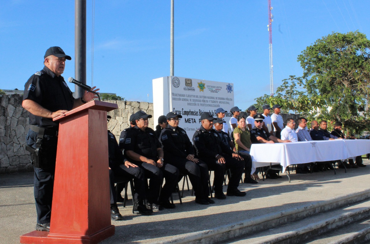 “Estos cursos son resultado de las gestiones que emprende la actual administración municipal, conforme a lo establecido en el Plan Nacional de Paz y Seguridad, que impulsa el presidente de la República, Andrés Manuel López Obrador, para que los solidarenses cuenten con una Policía Municipal capaz y eficiente, siempre dentro del marco de la ley en pleno respeto a los derecho humanos”, afirmó el director general de Seguridad Pública y Tránsito Municipal de Solidaridad, Martín Estrada Sánchez.