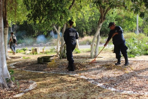 Estas jornadas de limpieza se realizan cada semana en parques, espacios deportivos y canchas públicas de colonias y fraccionamientos en todo el municipio, como Villas del Sol, el Petén, la Guadalupana, otras áreas del Ejido, la Delegación de Puerto Aventuras, y más, con la finalidad de contribuir a una mejor vigilancia y cumplir con el propósito de disminuir los índices delictivos, así como reforzar la convivencia familiar y vecinal.