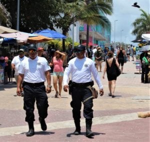 De la misma forma la Dirección de la Policía Turística mantiene presencia con recorridos en conjunto con la Policía Naval a bordo de cuatrimotos y a pie, así como en patrullas sobre las calles perpendiculares y la décima avenida, a la vez que se mantiene el contacto con los trabajadores de los comercios.