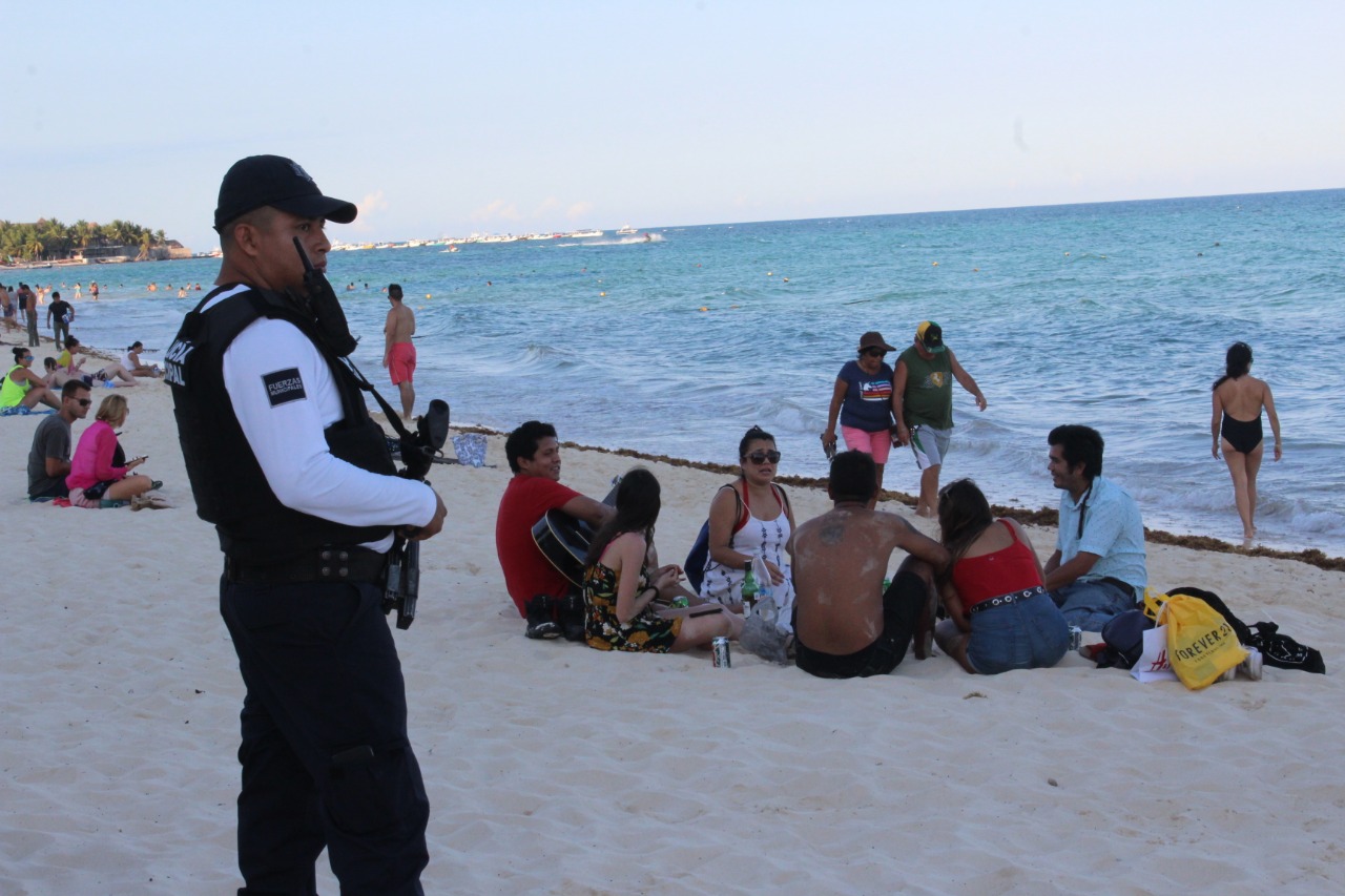 Asimismo, detalló que con la llegada del turismo, se refuerza la seguridad con mayor presencia de elementos de la Secretaría de Marina (SEMAR), la Secretaría de la Defensa Nacional (SEDENA) y la Policía Federal división Gendarmería en toda la zona turística, en el primer cuadro de la ciudad sobre la Quinta avenida, Décima avenida de norte a sur, zona de discotecas y playas públicas, así como en plazas comerciales, restaurantes y comercios para atender de forma eficaz y oportuna cualquier reporte de auxilio y disuadir las conductas delictivas.