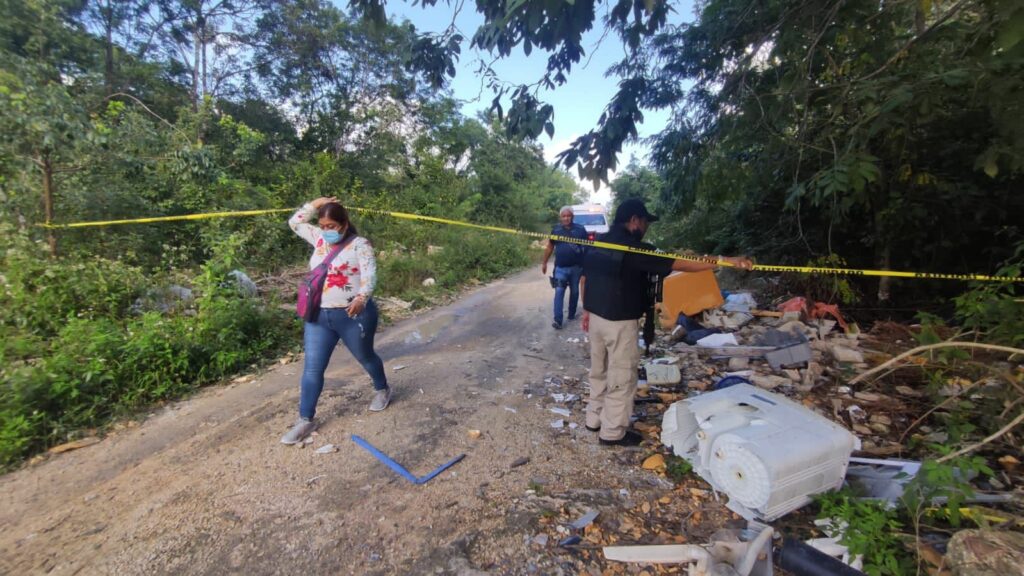 Playa del Carmen.- El cuerpo sin vida de una persona, al parecer una mujer, fue hallado esta tarde en un área verde de la colonia Natura de esta ciudad. Todo indica que fue asesinada.