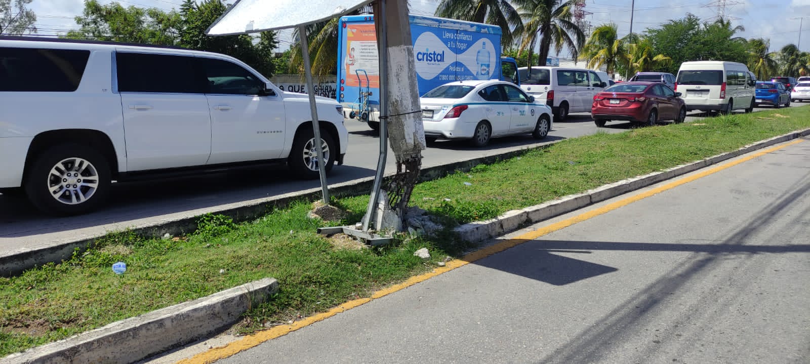 InicioQuintana RooPlaya del CarmenPoste a punto de caer pone en alerta a automovilistas en el...